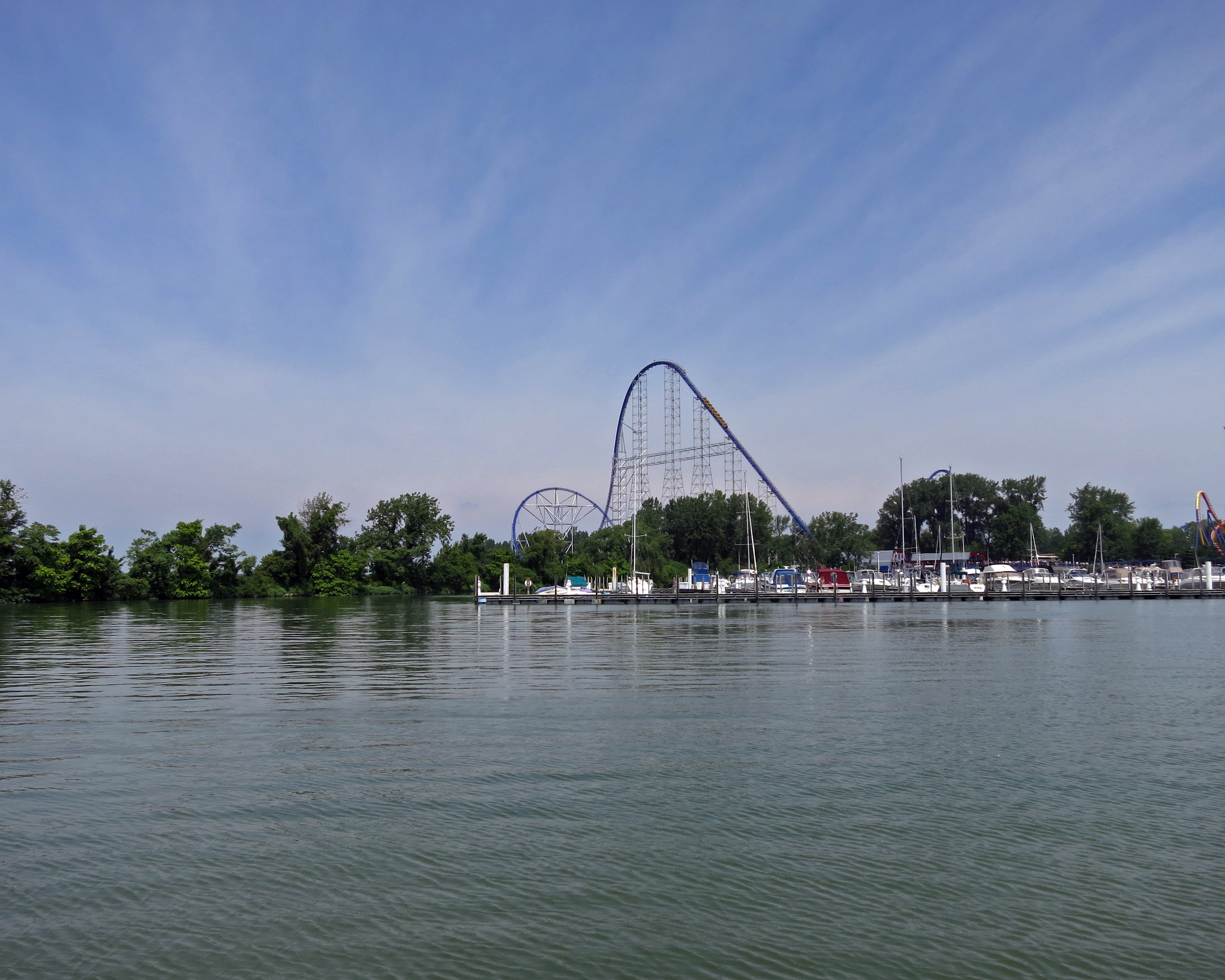 One of the ORIGINAL Paddlewheels (from the 70’s) has been retrofitted and makes daily sailings on the hour from the CP Marina (the same pier as Famous Dave’s Restaurant). It provides a tremendous 45 minutes trip out onto Lake Erie, past CP, and back again — and I guarantee you the absolute best views of Cedar Point, from the most unique angle. The boat is freshly painted; it is in remarkably good shape, and it provides a really comfortable ride.