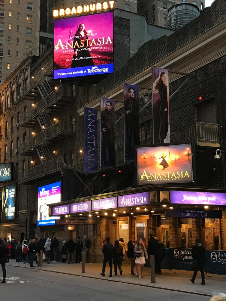But where this musical excels is in the superior sets and costumes (and projections). It has been many years since Broadway has seen a musical this lush and sumptuous. I stopped counting Linda Cho’s amazing costumes and changes. The clothing is stunning, and the “Last Dance of the Romanovs” (later reprised in the ghostly and heartbreaking “Once Upon a December”) is breathtaking.