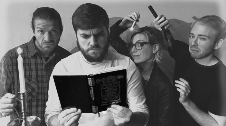 Sonja Marquis directs the very energetic show’s four actors (left to right in photo above, Victor McDermott, Matthew Wallace, Elizabeth Fritsch, and Mark Vukelic) and makes great use of the space for this romp through (not always) Dickensian territory. Set, Lighting, and Sound design by Matt Tomich are terrific throughout.