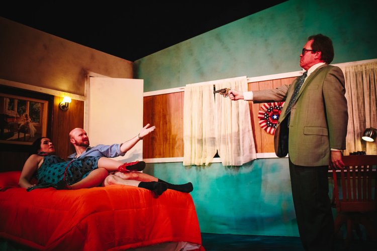I don’t want to get into the plot much, except to say that the intermission-less three-scene comedy takes place in the late 70’s at a Howard Johnson Hotel around three holidays — as time passes, you get some insight into the dysfunctional relationships at play between husband and wife, wife and lover, and husband and dentist. Don’t ask. Important to the plot are a bottle of blue nun, a hotel window ledge, a gun, pills, and a surprise for the third scene. None of it is too offensive (though keep in mind these jokes were written in the 70’s so there is a touch of that Love Boat-ness I told you about). But these are equal opportunity jokes. Cunningham gets as many quips and double entendres as the guys, and its all in good fun.