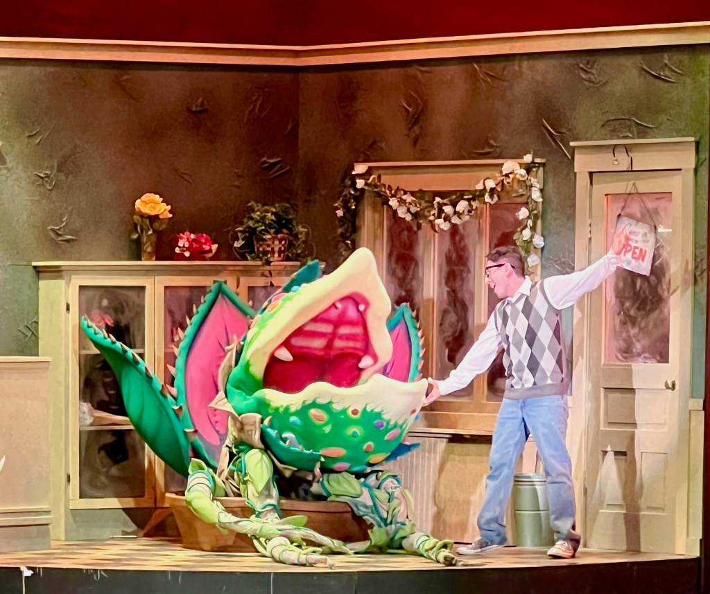 There’s a whole lot of fun going on in Adrian where Croswell Opera House is presenting Little Shop of Horrors, a musical theater staple. Under the direction of Jared Hoffert, musical direction of Jonathan Sills, choreography of Jessica Briggs and Scenic Design of Doug Miller, how can you not have one spectacular production. And this is. The show has a great off-Broadway feel to it, and it looks and sounds fantastic. Chris Goosman designed sound, Marley Boone designed costumes, and Tiff Crutchfield designed lighting.